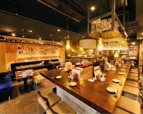 【カウンター席:12名様まで】入口入ってすぐにあるのはこのカウンターのお席です♪オシャレなカウンター席は1名様でもOK!デート等のご利用も多数♪
